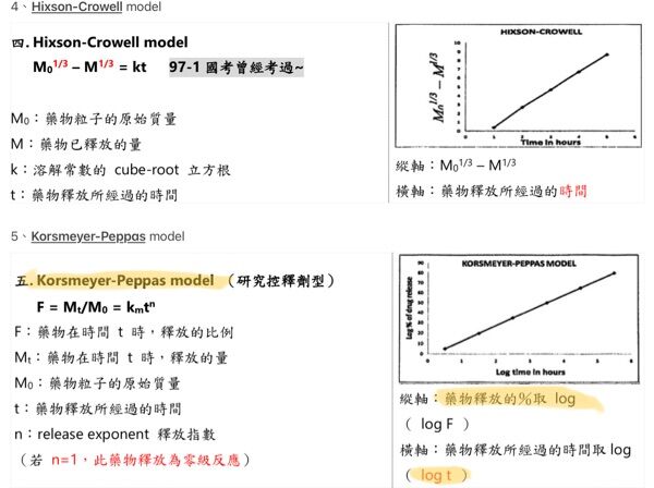 73 下列關係式中何者最適宜描述球形固體粉末之溶離模式?