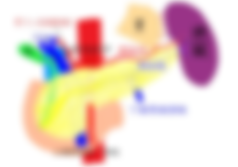 (D)胰臟呈中高度均勻之回音,位在脾靜脈的背側