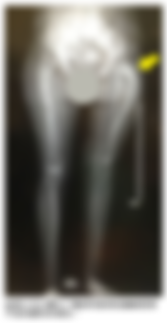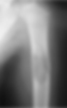 74.13歲男國中生最近覺得右腳膝蓋附近偶爾隱隱作痛,且疼痛的時間越來越長,晚上睡覺時症狀也很明顯,附 圖為下肢X光攝影,最可能的診斷為何?