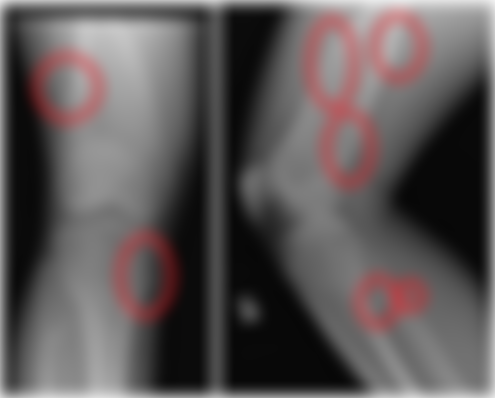 74.20歲男性,因右膝受傷接受X光攝影。附圖為X光攝影影像,最可能的診斷為何?