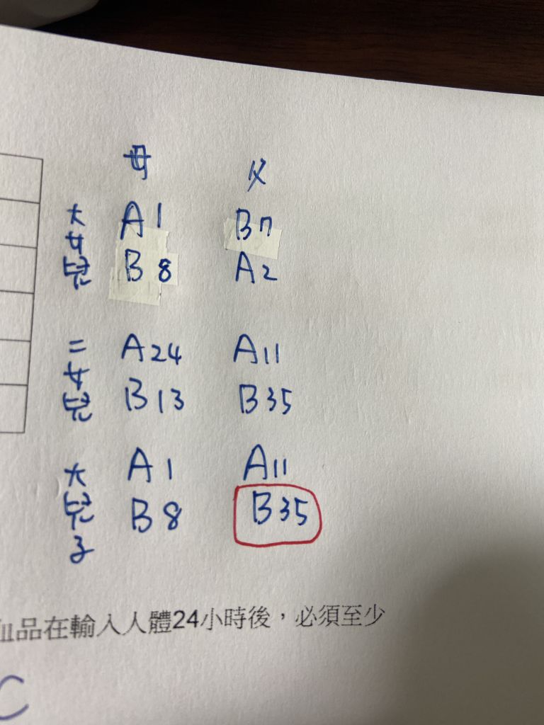 由大女兒和二女兒去推父母HLA連鎖基因大...