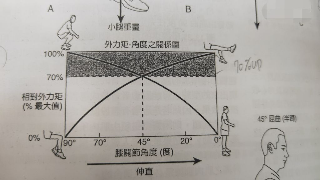 題目則問90度到0度做膝伸直肌群的向心收縮