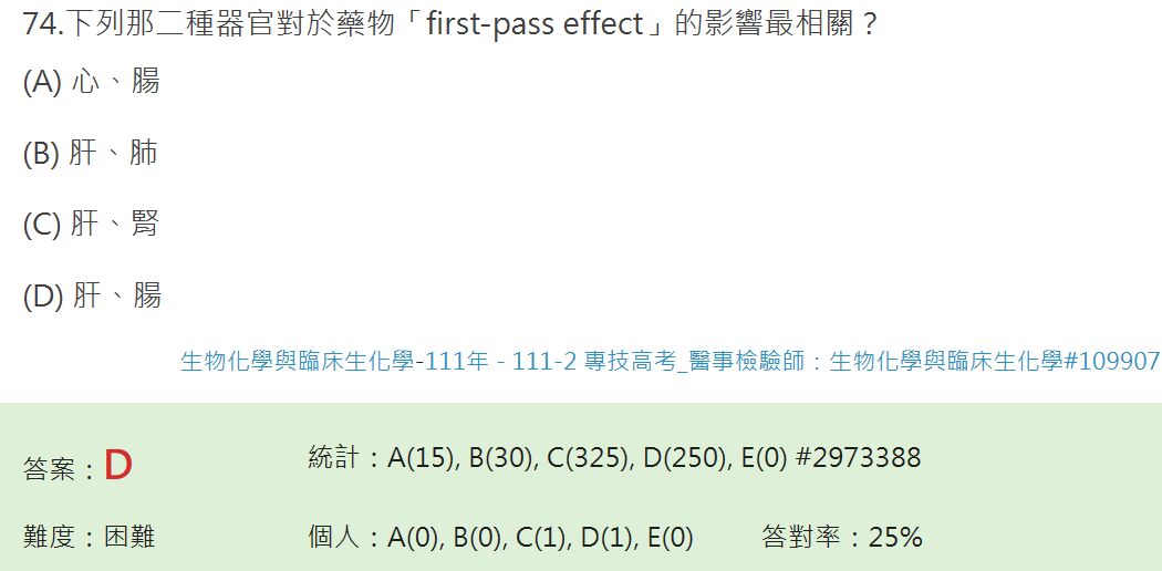 75.藥物進入體內後,主要於下列何種器官發生首渡效應(first-pass effect)?