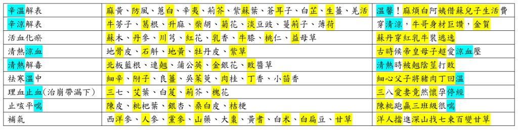 繖形科 Apiaceae:川芎、白芷、柴胡、當歸、羌活、防風、蛇床子、獨活