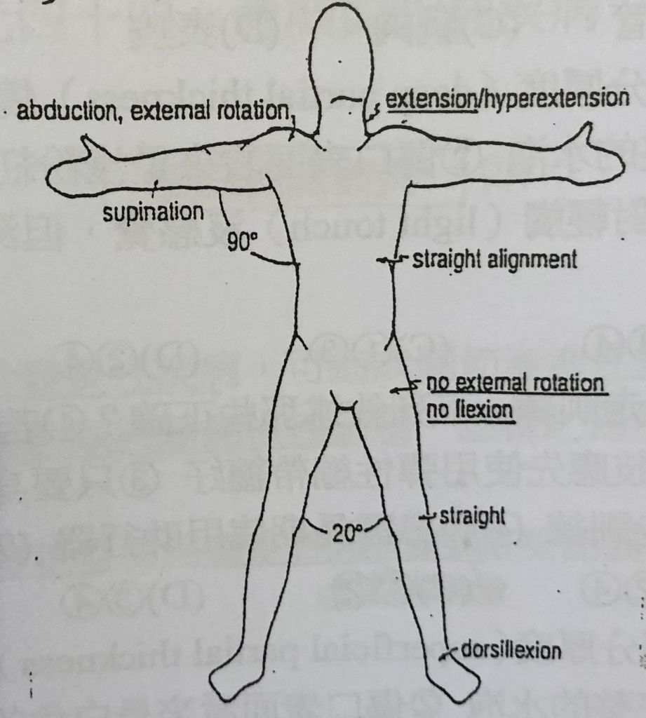 (A)可用Airplane splint將病人的肩關節上肢擺在外展與外轉