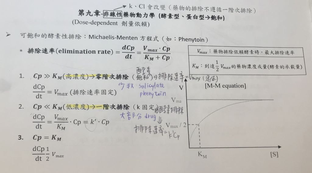 (A)藥物濃度遠小於親合常數(C<<KM)
