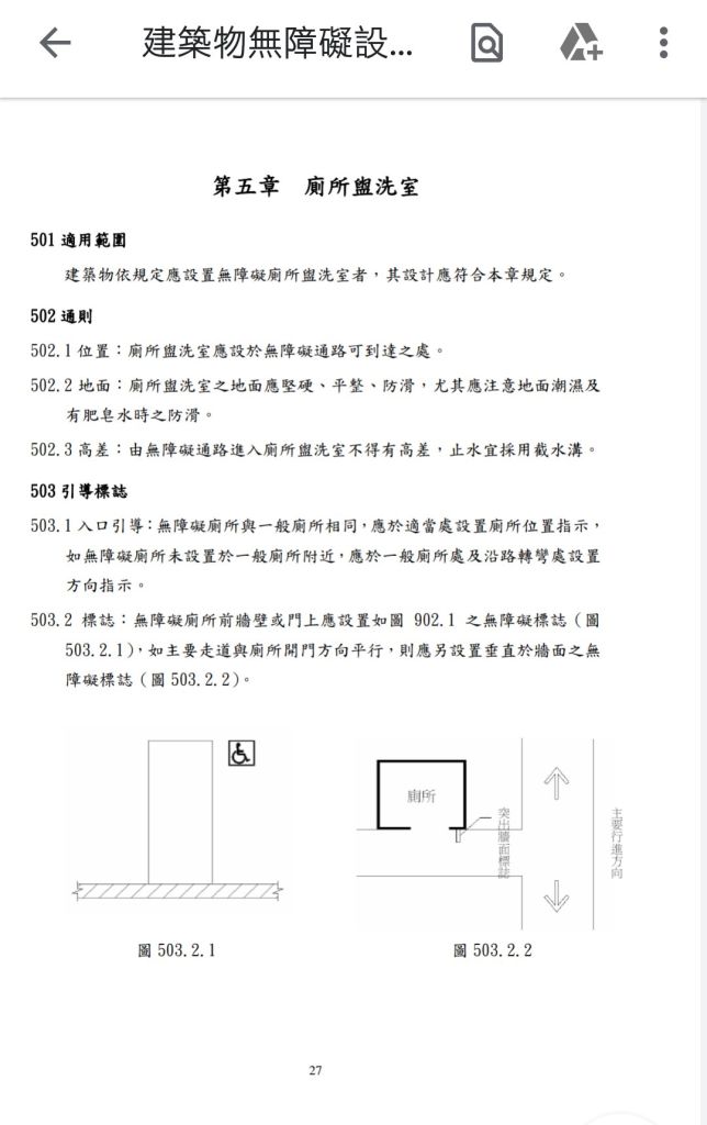 依據建築物無障礙設計規範 -廁所梳洗室...