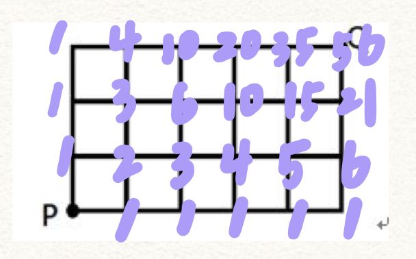 8 右圖為棋盤形的街道,想從 P 點沿著格線走到 Q 點,請問共有幾種捷徑?