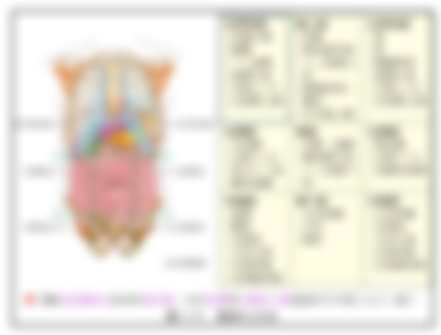 (A)右季肋區:肝右葉、膽囊、腎1/3(...
