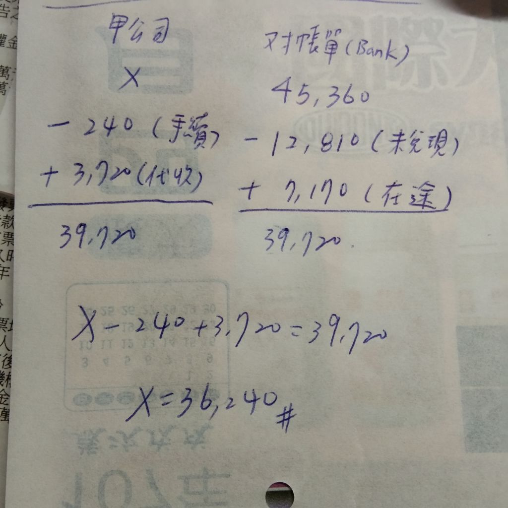 途存款$7,170。試問公司收到銀行對帳單前原帳列之現金餘額為何?