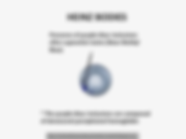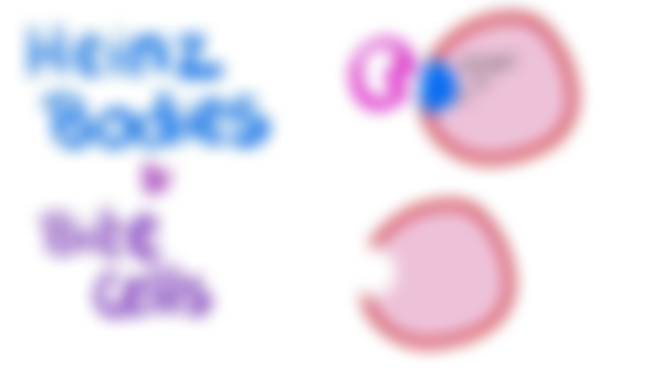 Heinz body(折光小體)由變性血紅素形成,會破壞紅血球膜,使紅血球呈現大小不一、鋸齒狀、卵型等等