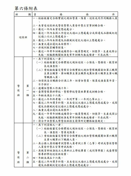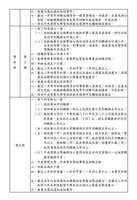 另可參考警察人員進修及深造教育實施辦法第6條之附表: