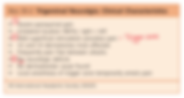 引發區(trigger zone)而引起疼痛;③常伴隨有其他神經缺陷(neurologic deficits)