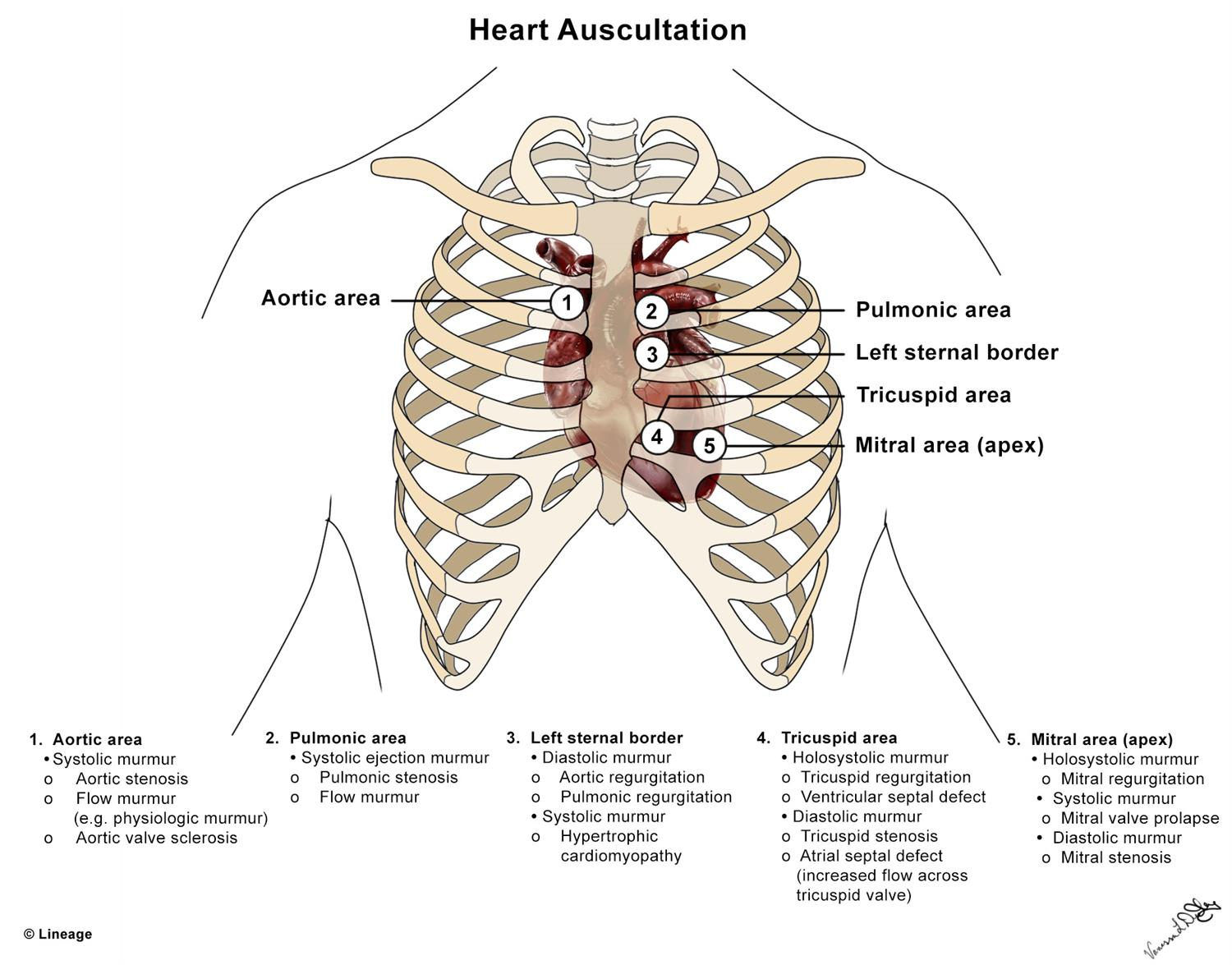 下方原圖就很清楚標明那些位置的murmur分別考慮什麼