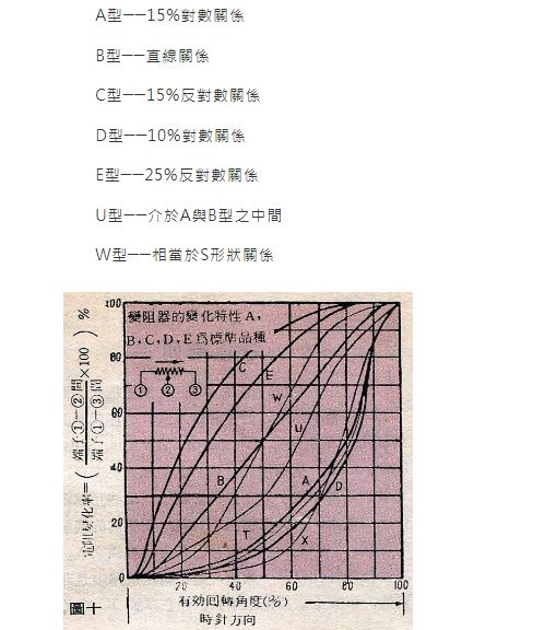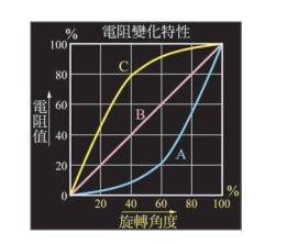 8.欲購買一個可變電阻,其電阻值變化會與旋轉角度成線性關係,請問應該 買哪一類型的可變電組?
