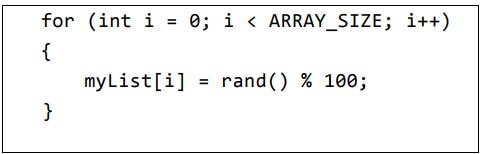 8. Given a C code as follows, which random range initializes the array myList?(A) 0 to 100(B) 1 to 100(C) 0 to 99(D) 1 to 99(E) All the listed answers are incorrect.