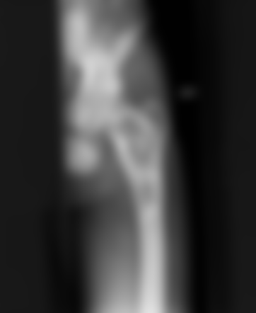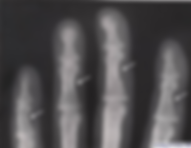 8.40歲女性下顎骨前牙區有如圖之放射線透過性病灶,且被檢查出高血鈣、低血磷酸鹽及高鹼性磷酸酶的情形, 則最可能罹患下列何種疾病?