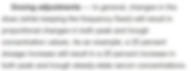80.承上題,唐小姐抽血結果:trough 4.1 mg/L,peak 12 mg/L。在達穩定狀態下,peak抽血時間為給藥開始後40分鐘,trough抽