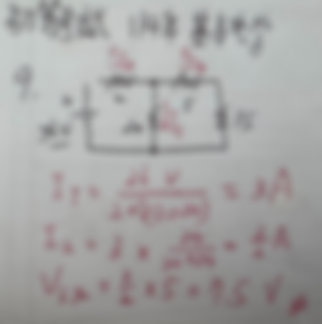 9 如圖所示之電阻電路,跨於 5 歐姆電阻之電壓為多少伏特?