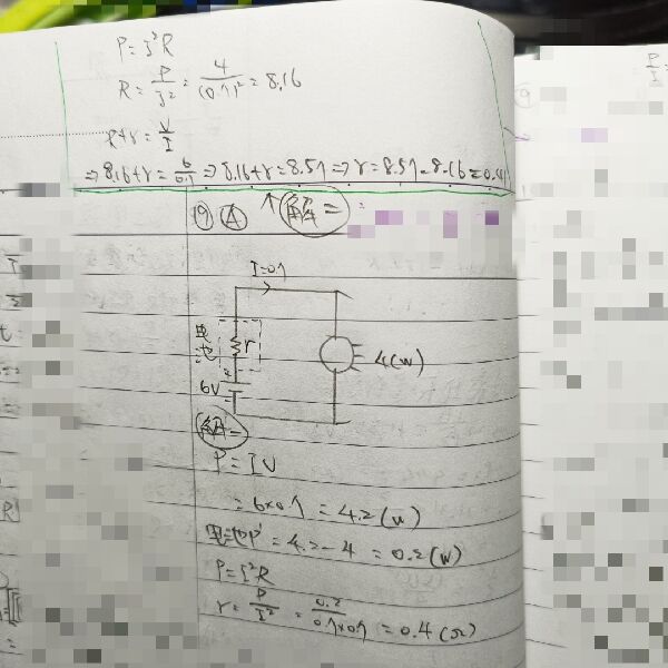 9 有一燈泡接於電動勢 6 V、內電阻不為零之電池上,電池輸出之電流為 0.7 A,燈泡消耗電功率為 4 W,