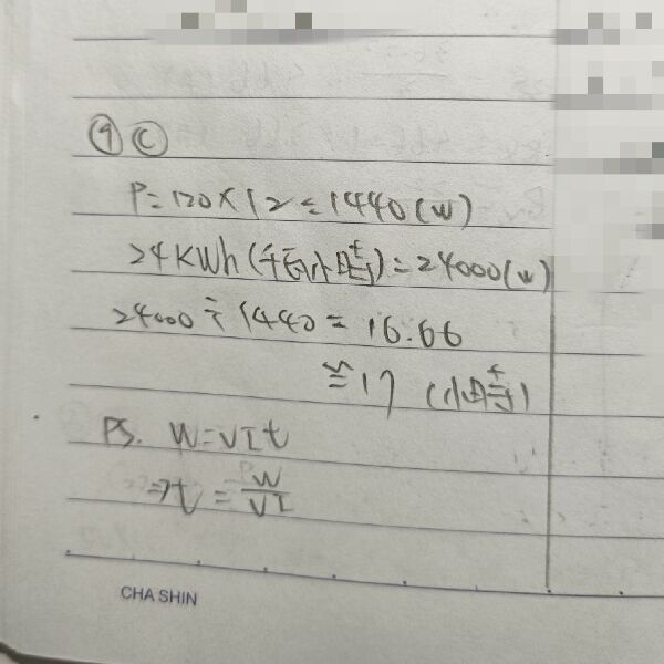 9 有一電動車之電池容量為 24 kWh(千瓦小時),若以 120 V,12 A 之插座電源充電之,則約需多少 時間方能使這電池完全充飽?