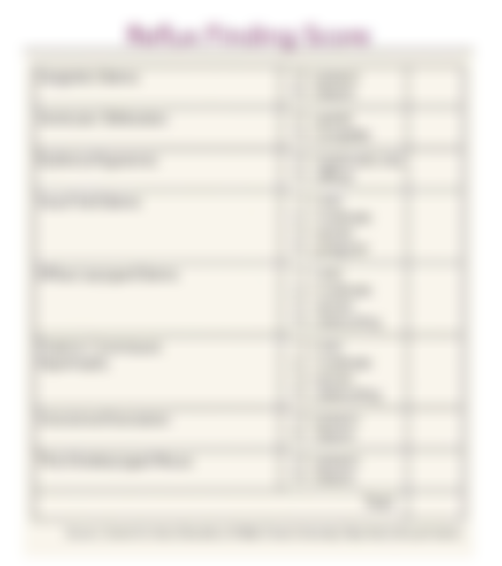 (C) Belafsky 等人提出的 Reflux Finding Score(RFS)為患者自我評量胃食道逆流嚴重度的量表,13