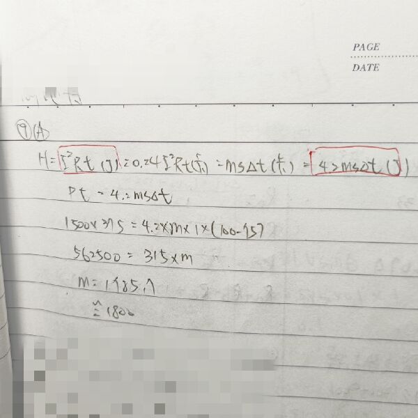 9 某電熱器額定功率為1500瓦特,今以此電熱器加熱一水壺內的水,已知水溫由25℃升至100℃所需時