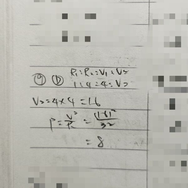9 有兩個電阻器 R1 及 R2,電阻值比為 R1:R2=1:4,今將其串聯後,接於電源,已知 R1 電阻器之電壓 降為 4 V,R2 消耗之功率為 32 W,則 R2 為多少 Ω?