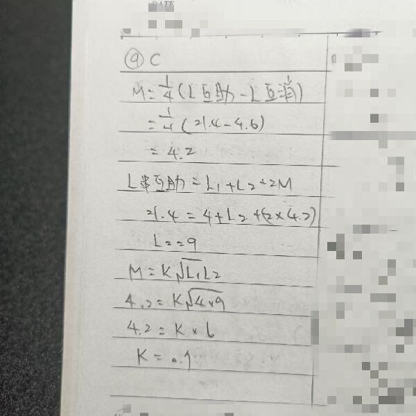 9. 4 亨利的電感器 A 和 X 亨利的電感器 B 於同向與反向串接時,等效電感量分別為 21.4 與 4.6 亨利, 則兩電感器間耦合係數為何?