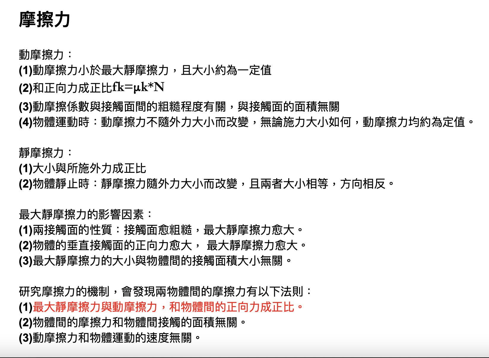 (C)動摩擦力量值與接觸面的正向力量值成反比