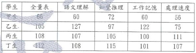 甲生是全面性各個層面都表現不佳,當然處理速度的問題(專注力)的影響性,不如乙生明顯