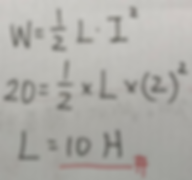 9.有一電感通以 2A 之電流,共儲存 20 焦耳的能量,則此電感之電感量應為多少?