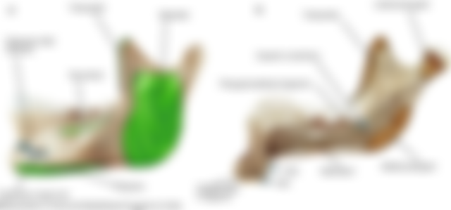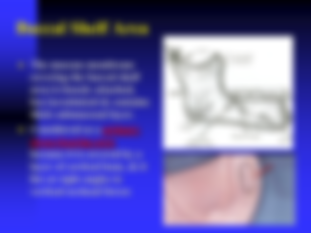 (A)其範圍介於下顎頰繫帶(buccal frenum)至咬肌(masseter muscle)之後緣