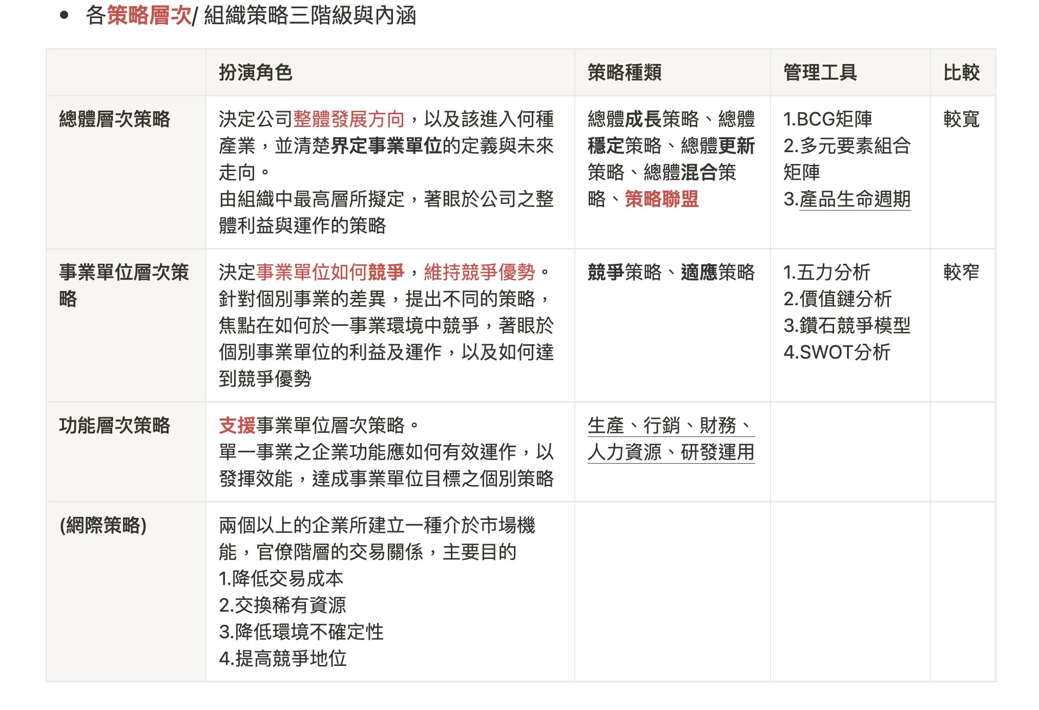 事業策略:一般性競爭(成本領導、差異化、集中化)