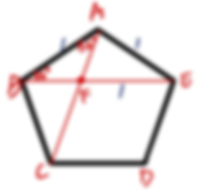 9. 如圖,有一邊長為 1 的正五邊形,求任一對角線的長度為何?