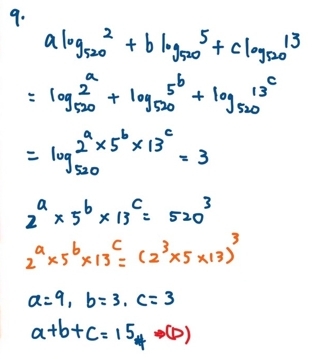 9. 已知a,b,c為正整數,若 a log5202+b log5205+ c log52013= 3,求 a +b +c。