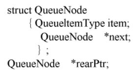 96. 利用環狀鏈結串列(Circular Linked List)來實作一個佇列(Queue),且該串列有一個後端指標(rearPtr)指向佇列之最後一個元素,若佇列之每一個節點結構如下,下列敘述中何者可以正確地取得佇列中的第一個元素資料 (假設在一個成員函式(Member Function)中,Private Member 的存取是合法的)?