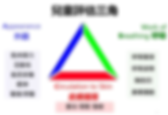 97. 醫護人員處理急性傷病的兒童,應在初接觸孩子的數秒鐘內,以簡單的三個面向做最初步的評估,此即所謂的兒童評估三角(pediatric assessment triangle, PAT)。請問下列哪一項目,並非在兒童評估三角裡建議評估的項目或方法?