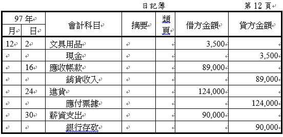 二、試將世界商店97年12月份交易事項及年底應調整事項登入傳票。