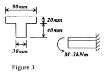 3. A cast iron machine part in Figure 3 is loaded by the 3 kN.nt couple shown. (Neglect the effect of fillets)