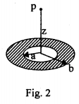 2. A center hollow disk (inner radius a, outer radius b, as shown in Fig. 2) with uniform surface charge density σ.