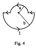 4. Two semicircular loops of radii a and b have a common center and their ends are joined by straight wires, as shown in Fig. 4.