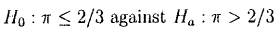 7某縣的縣長認爲若該縣超過2/3的民衆贊成設立賭場5則他就向中央爭取該縣成立合法的大型賭場,根據一項民調結 果顯示在受訪的900人中有630人贊成賭場成立.令π表示該縣贊成設立賭場的實際人口比例,利用此筆資料檢定