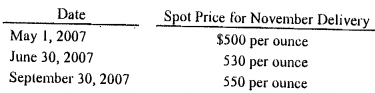 To hedge the risk of increased titanium prices, on May 1, 2007, Hart enters into a titanium futures contract and designates this futures contract as a cash flow hedge of the anticipaled titanium purchase. The notional amount of the contract is 200 ounces^ and the lerms of the contracl give Harl Ihe option to purchase titanium at a price of $500 per ounce. The price will be good until the conlract expires on November 30, 2007.
