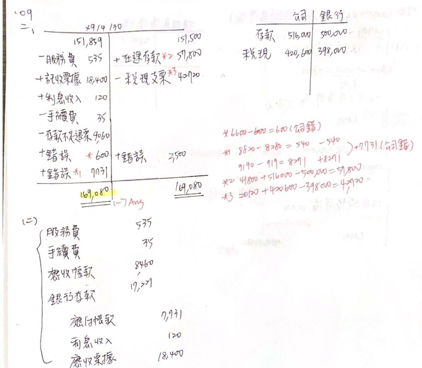 我也同樣有疑問 為什麼在算本月在途存款以及未兌現支票時 不用先調整至正確的金額呢