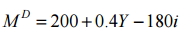 ,其中租稅T = 0.2Y ,投資函數 I = 200- 400i,其中 i 表示利率。政府支出G = 140,淨出口 NX =160。貨幣供給量為 MS = 750,貨幣 需求函數則是