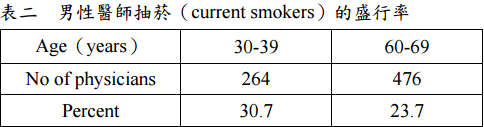 二、表二資料來自對男性醫師抽菸狀況的調查。