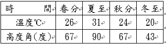 (A) 四季代表日中,哪一天中午的氣溫最高?高度角為多少?