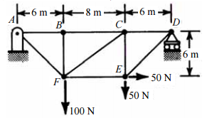 ⑴下圖桁架結構中,FE 樑承受的是張力抑或壓力?其值又是若干?(7 分)