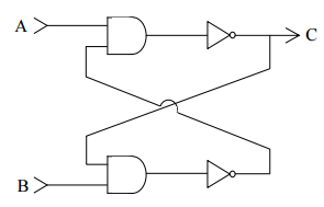 ⑴若輸入端 A 短暫間變為 1,則輸出端 C 將輸出何值?